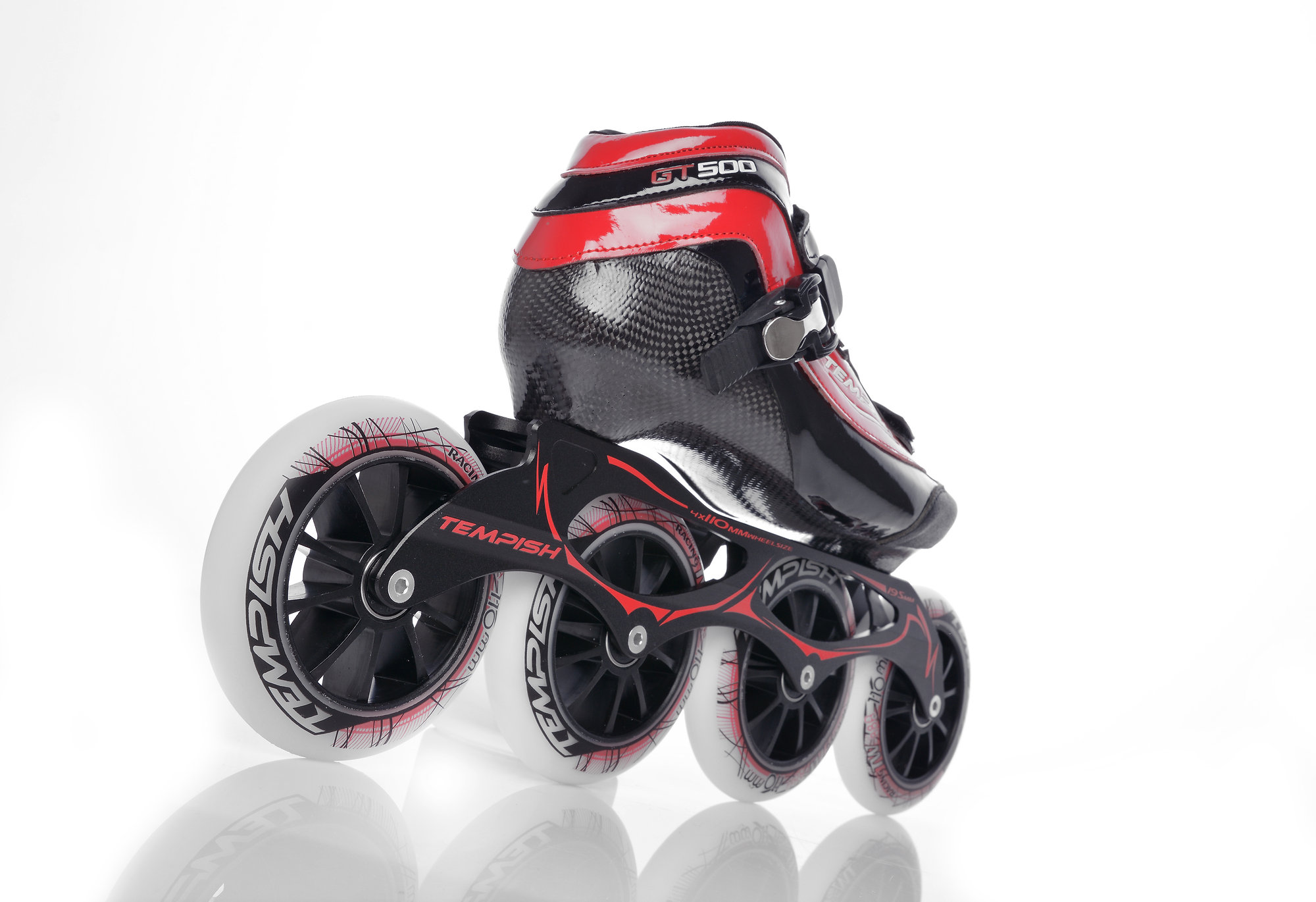 GT 500 110 in-line are specially developed speed skates for recreational, amateur and beginner speed riders who prefer fast and dynamic riding and like to ride longer distances with these skates can also try speed and endurance speed racing skating. Degree of endurance of sports load 5. Extremely light skeleton formed by 7 layers of glass fiber and 2 layers of carbon fiber. Skeletal termination in the ankle and Achilles tendon - comfort fix. Reinforced with one velcro instep strap, upper buckle with micro buckle. The inner shape of C ++ is optimally prepared for a wide group of the general population. Outer material faux leather with microfiber reinforced by stitching, inner material of the shoe microfiber.