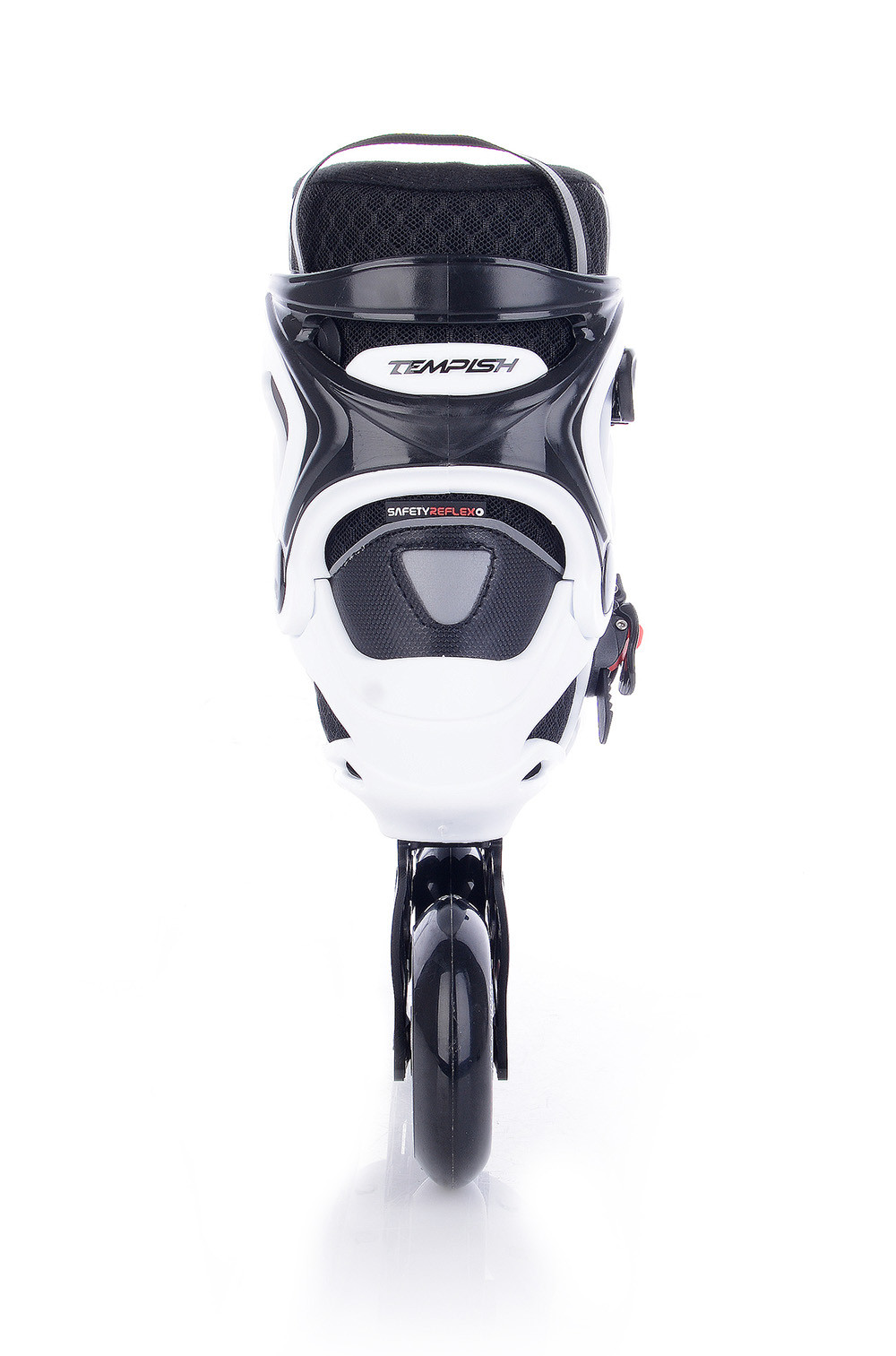 The TEMPISH universal "S" brake is used for skates. The brake is included in the box together with 4 screws - very easy installation - without the need to remove the axles and wheels. The material of the brake holder - nylon with fiberglass - very rigid and strong, which allows you to adjust the height of the block. TPR block material. EZZA UNI 90 skates are equipped with wheels from the RADICAL, PU casting (PUC), Super Hi-Rebound (SHR) series. These are high-quality wheels with very low rolling resistance and long life, which achieve very low wear on various surfaces and perfectly dampens uneven surfaces, which guarantees a really comfortable ride. The wheels are fitted with ABEC 9 hi-precision bearings with a rubber duster. The lacing is classic laces. A reinforcing tape with a micro buckle is placed over the instep.