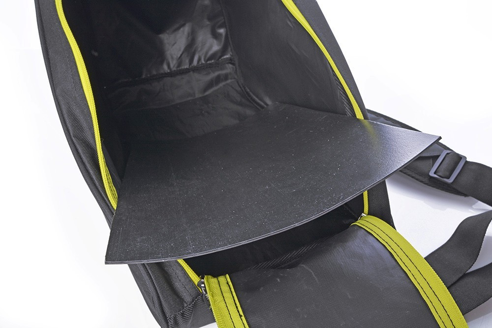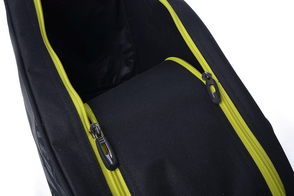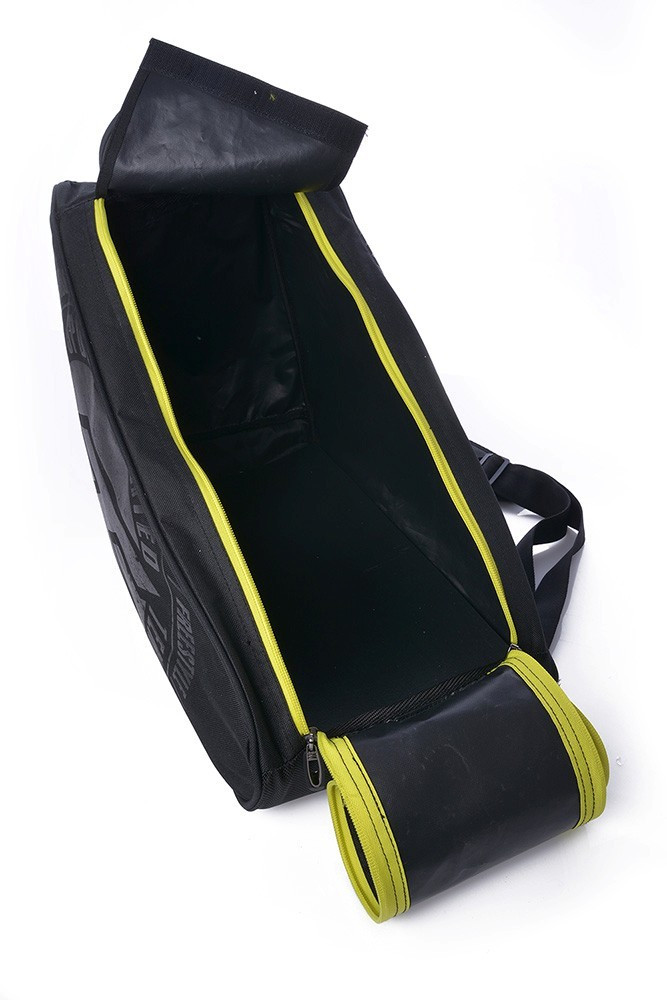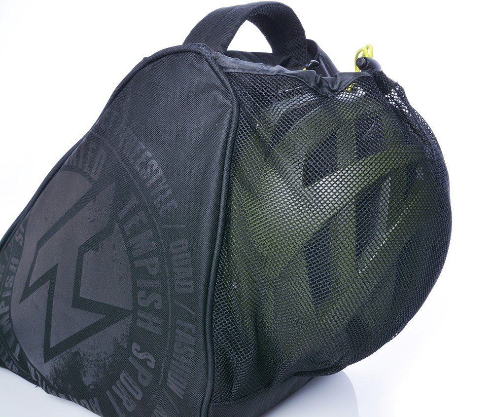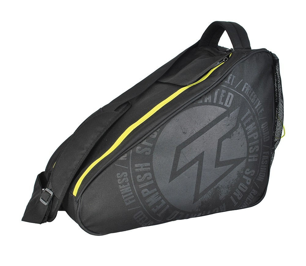 Sports bag designed for transport and storage of in-line and winter skates. Adjustable and removable shoulder strap with reinforcement, reinforced bottom and outer pocket.