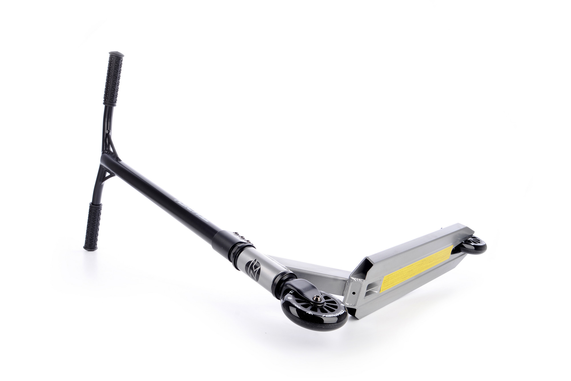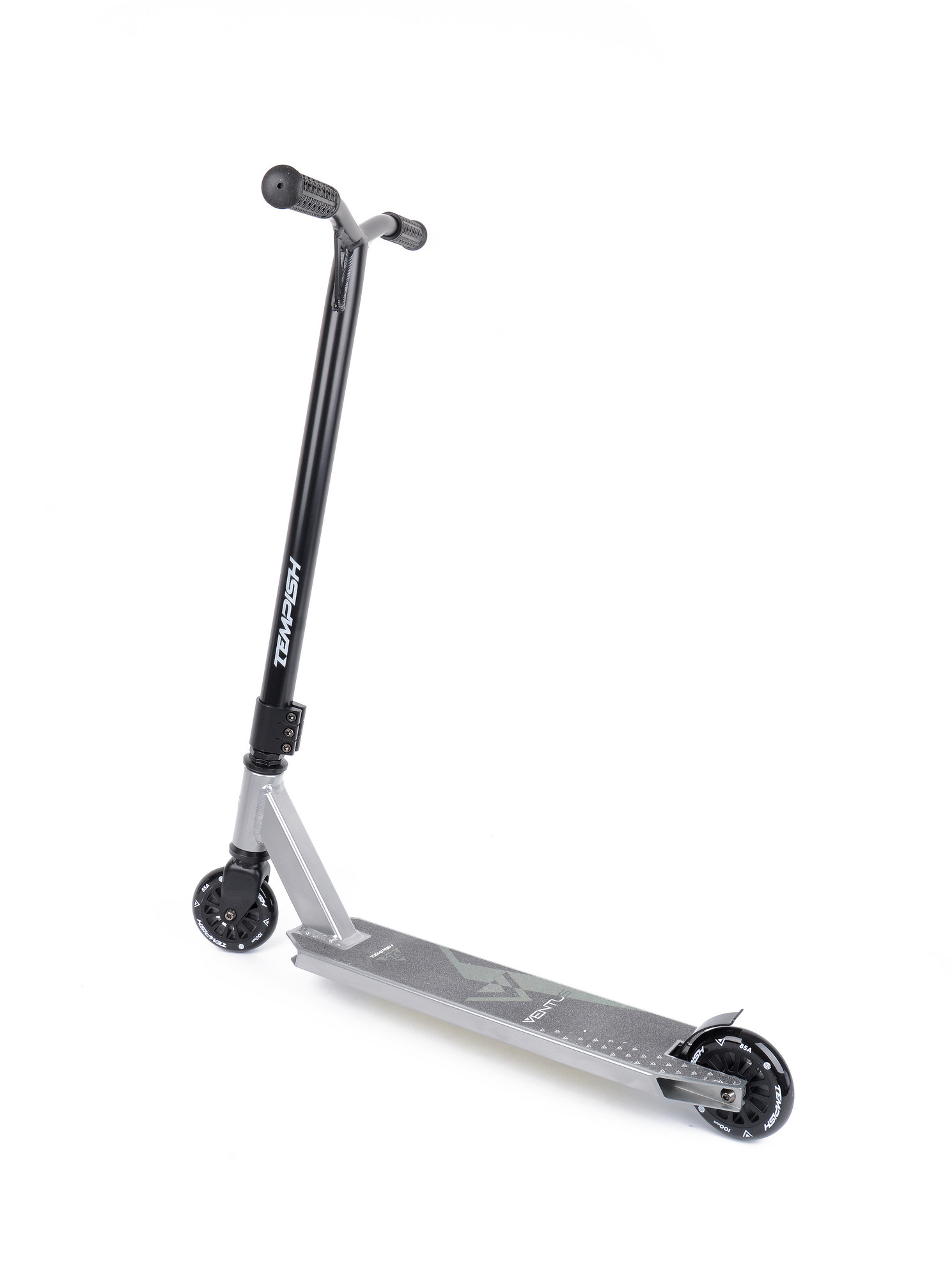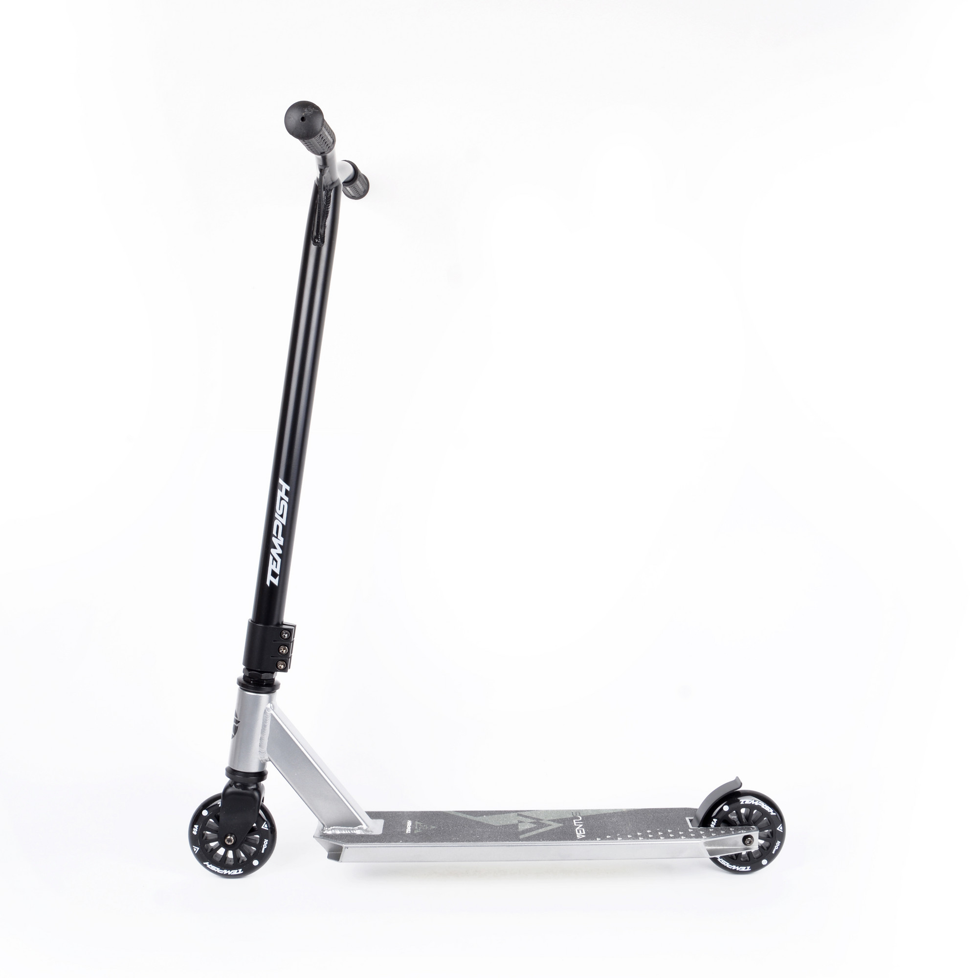 The VENTUS 100 scooter is designed for freestyle, it is equipped with 100 mm diameter wheels, hardness 85A. Threaded headset. Compression system: threaded + 3-bolt clamp. On the reinforced handlebars made of high quality aluminium alloy, measuring 580 x 500 mm (22.8" x 19.7"), there are 120 mm TPR grips. The plate is two-profile. The fork is steel.