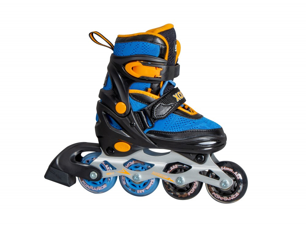 Quality junior inline skates with reliable velcro fastening and lacing over the lace. These inline skates have a padded Semi-Soft lining. Easy size adjustment to by 4 sizes. Ideal for a growing children.